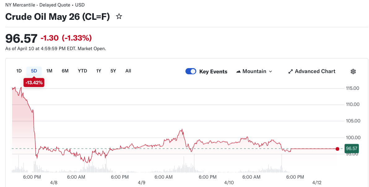 Der Preis für ein Barrel ging um 13,4% zurück. Ein längerer Krieg gegen den Iran hätte zu Ölpreisen von 150 bis 200 Dollar geführt. Und das konnte sich Donald Trump politisch nicht leisten.