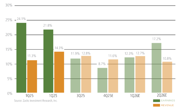In short, valuations today may be elevated in absolute terms, but they’re far more grounded in cash flow, scale, and real economic contribution than they were in the past. Tech earnings, as shown in the chart below, underscore this point. Excluding the Tech sector contribution, Zacks estimates that Q3 earnings for the rest of the S&P 500 index would be up only +2.7% (vs. +5.5% otherwise).